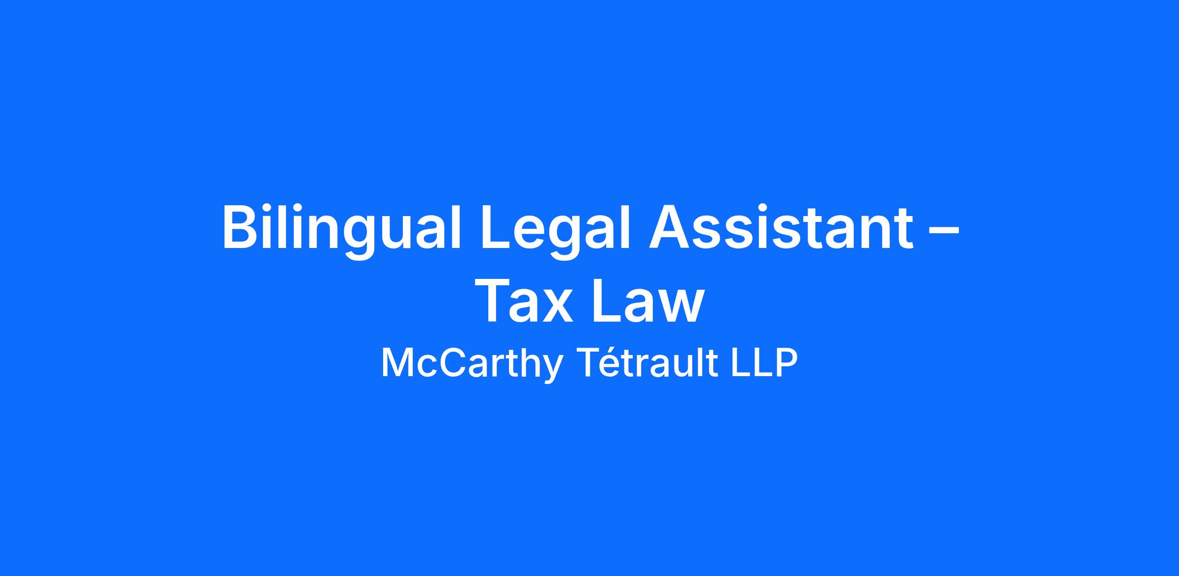 We are recruiting for a Bilingual Legal Assistant in Tax to join our team in the Toronto office. The successful candidate must have a minimum of 3 years of experience as a legal assistant supporting a share of lawyers. McCarthy Tétrault employees benefit from a hybrid work environment. This is a newly created position.