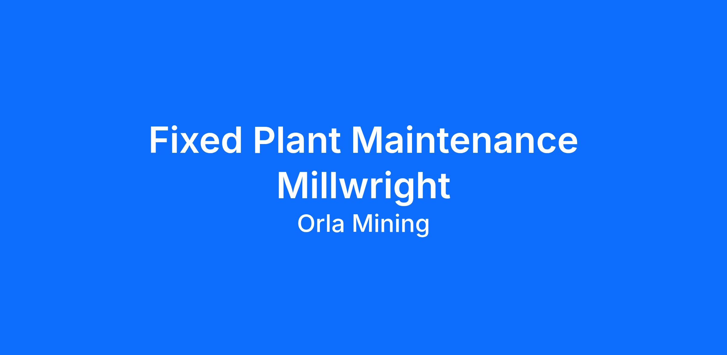 Fixed Plant Maintenance Millwright