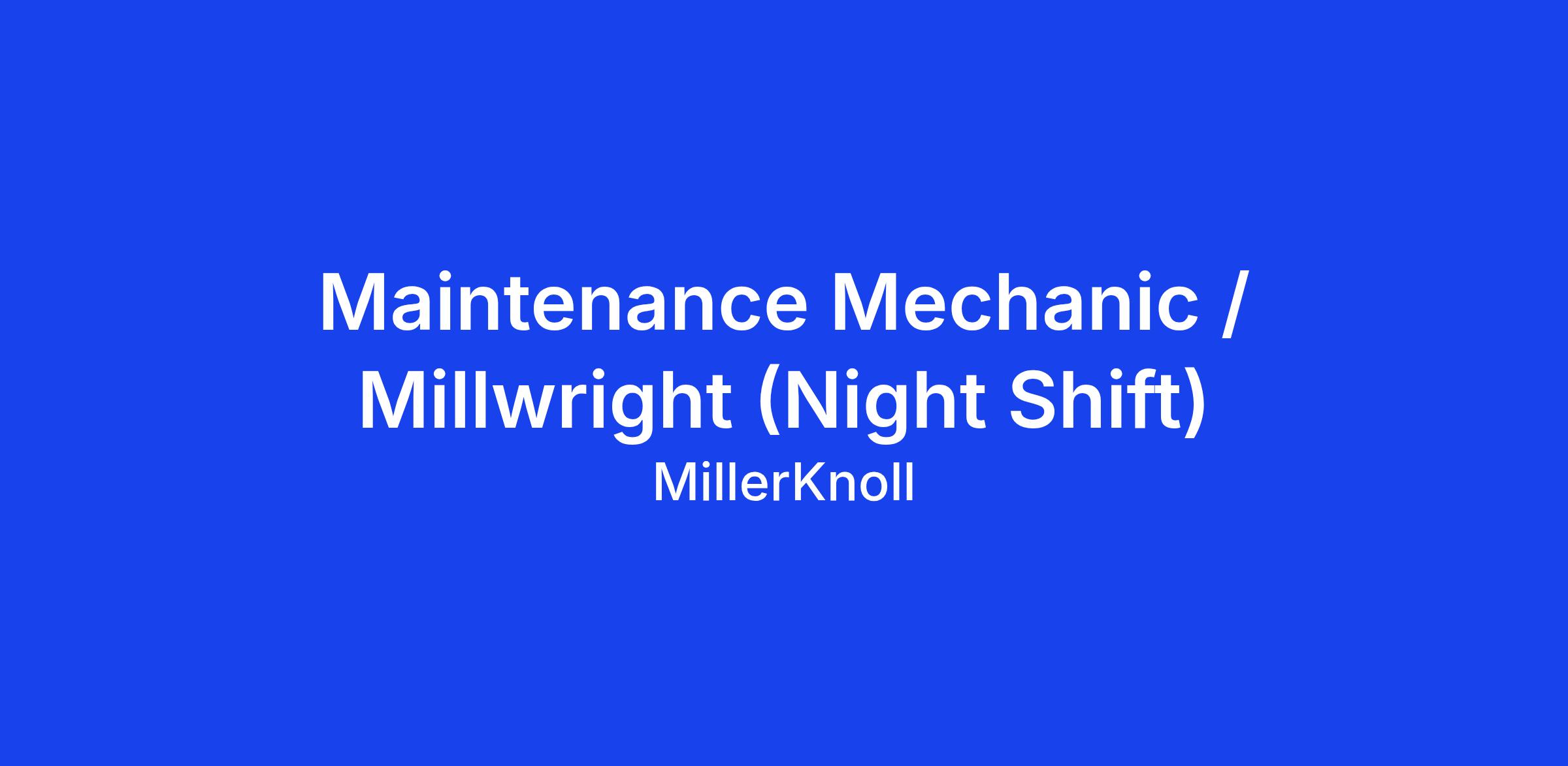 • Must be willing to actively support with the training of junior Millwrights and Maintenance associates