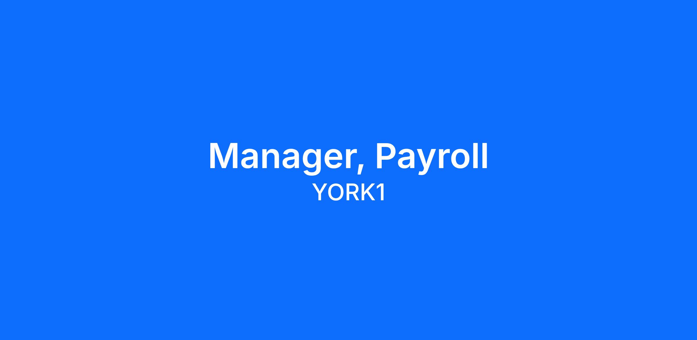 Job Title: Manager, Payroll