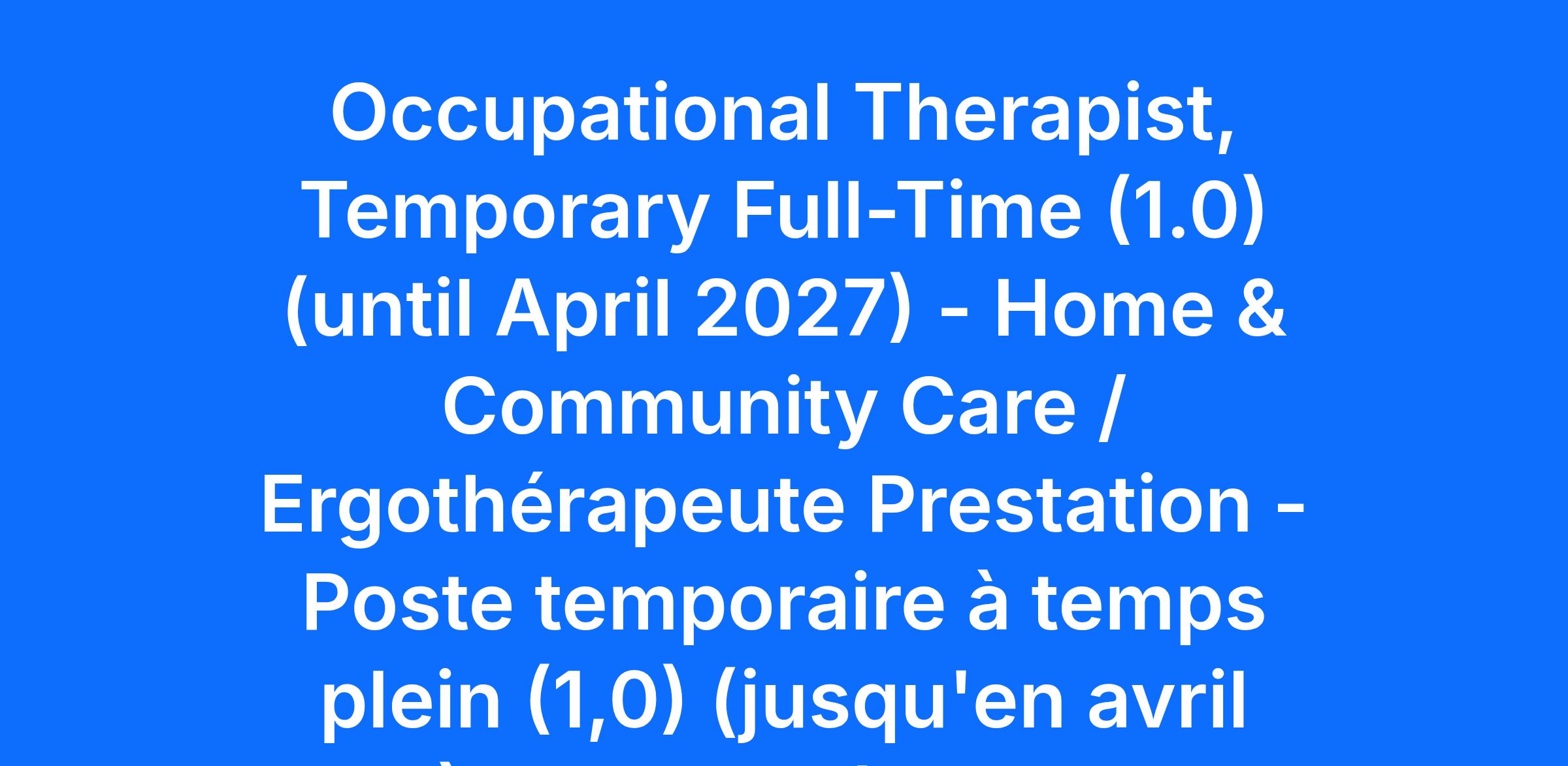 The Occupational Therapist (OT) provides services through CHEO’s Home & Community Care department, supporting patients’ home and school-based needs. In this role, the OT conducts clinical assessments and develops treatment plans and goals in consultation with patients, families, and interdisciplinary team members, in alignment with the standards of the College of Occupational Therapists of Ontario.