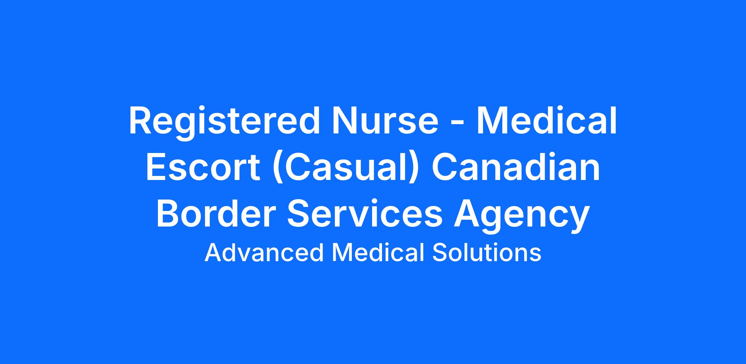 As a Medical Escort, you will provide clinical oversight, patient care, and medical risk management for individuals undergoing Canadian Border Services Agency (CBSA)-authorized removals and transfers during commercial air, charter, and ground transportation. Escort personnel ensure patient safety, stability, and dignity throughout the transport process while working alongside CBSA officers, who retain full responsibility for custody, security, and immigration authorities.