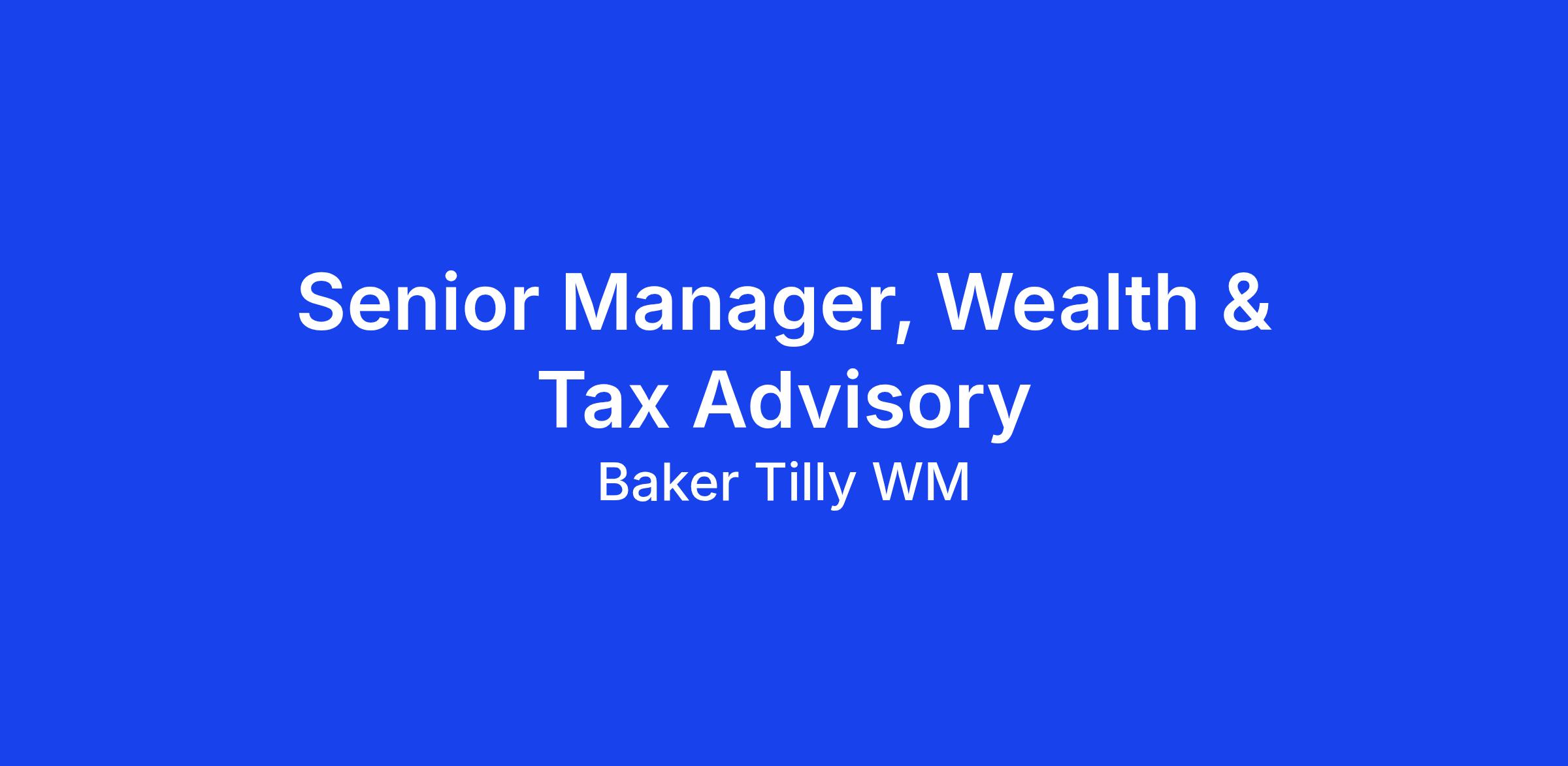 We are looking for a Senior Manager, Wealth & Tax Advisory to join our team - bring your ambition and shape what comes next.